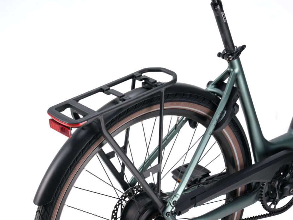 Le garde-boue métallique robuste protège efficacement contre l'eau et la saleté, assurant une protection durable au vélo et au cycliste. Le porte-bagages arrière MIK allie avec élégance fonctionnalité et style.