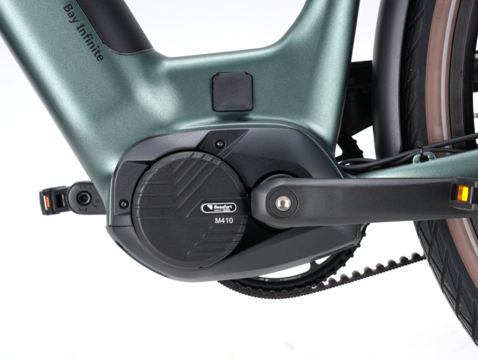 Équipé d'un puissant moteur central Bafang M410 de 90 Nm pour une assistance fluide et efficace lors de chaque trajet.