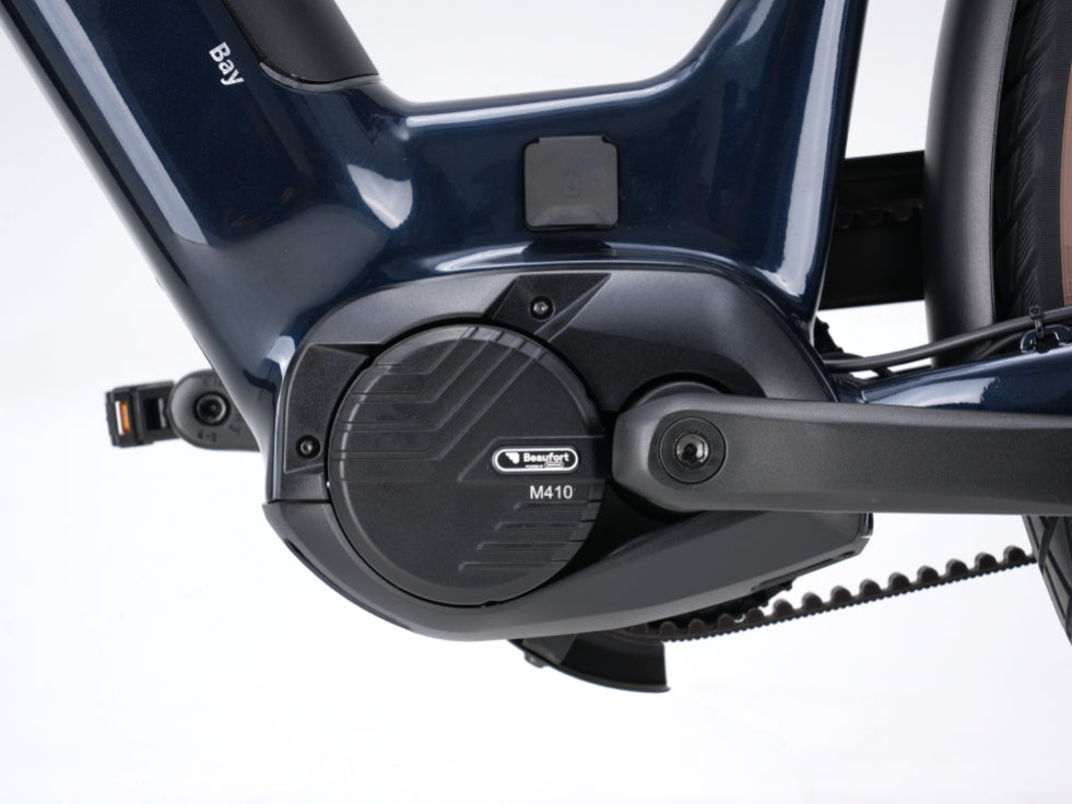 Équipé d'un puissant moteur central Bafang M410 de 90 Nm pour une assistance fluide et efficace lors de chaque trajet.