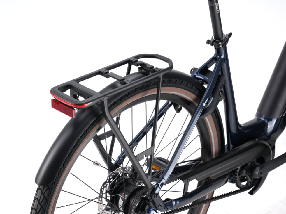 Le garde-boue métallique robuste protège efficacement contre l'eau et la saleté, assurant une protection durable au vélo et au cycliste. Le porte-bagages arrière MIK allie avec élégance fonctionnalité et style.